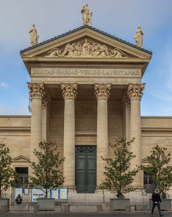 Built between 1823 and 1836 in the style of a Roman basilica by neo-Classical architect Lebas, the decorations of this church illustrate the different currents of religious feeling under the Restoration and the July Monarchy. A superb coffered ceiling. Decorating the choir : the large dome with the Translation de la Sainte Maison de Lorette painted by Delorme (1836). On each side of the master altar, two large murals : Jésus parmi les Docteurs by Drolling and La Présentation au Temple by Heim (1836). In the apse : The coronation of the Virgin (painting on a golden background by Picot, restored in 2013). Baptismal Chapel decorated by Adolphe Roger (1842) and restored in 2016. A particularly remarkable chapel illustrates the litanies of the Virgin, painted by Orsel, a pupil of Pierre-Narcisse Guérin.